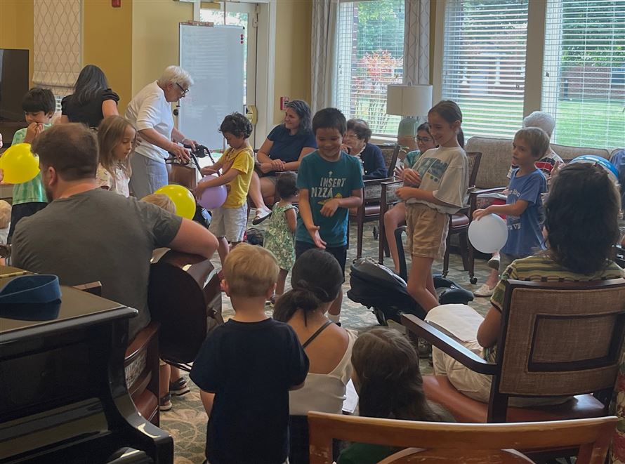 Now over two years after our post-Covid return to Grace House, we are a large group of friends and families with young children who visit the Grace House residents twice a month, for an hour each visit.  We sing songs and chat a bit with the residents while the children toss balloons with the residents and run around being silly.  That is literally it.  What is so impressive is the simplicity of the moment.  We are not building new homes for the homeless; nor making sandwiches, cooking for, or feeding the hungry.  We are spending our time with elderly residents.  And amazingly, this is worth writing about and sharing with others.